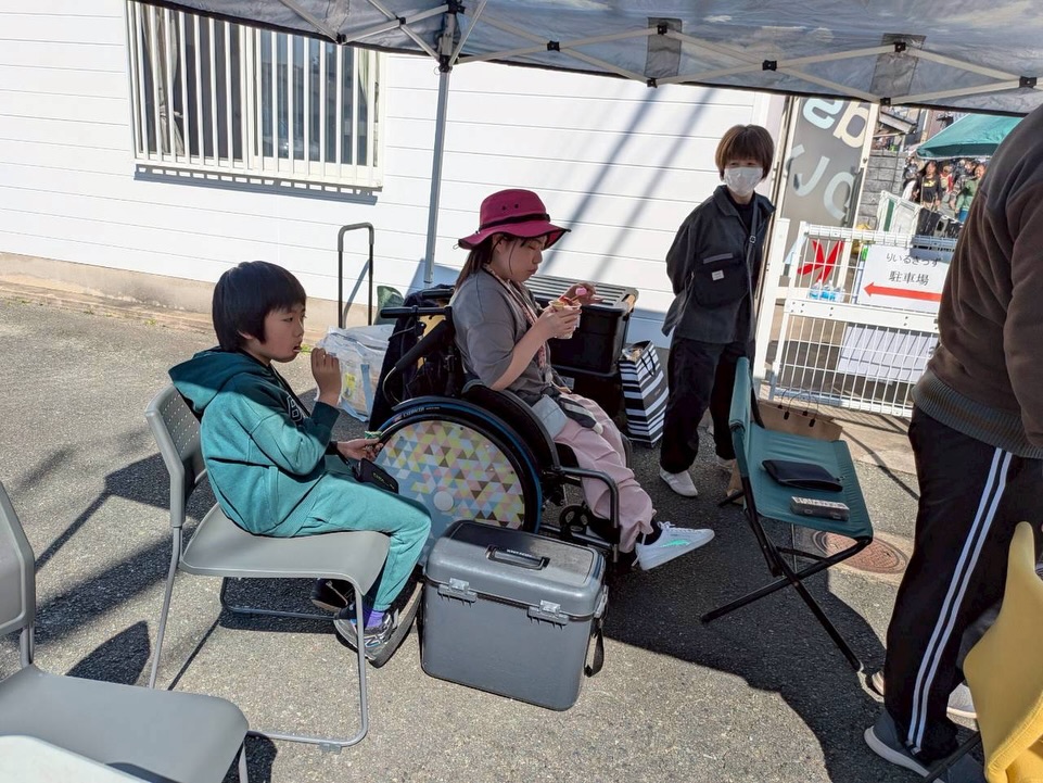 事業所のある赤間宿通りでお祭りが開催され、就労部門が出店していたため、きっずのみんなで店番のお手伝いをしました🏮🎪