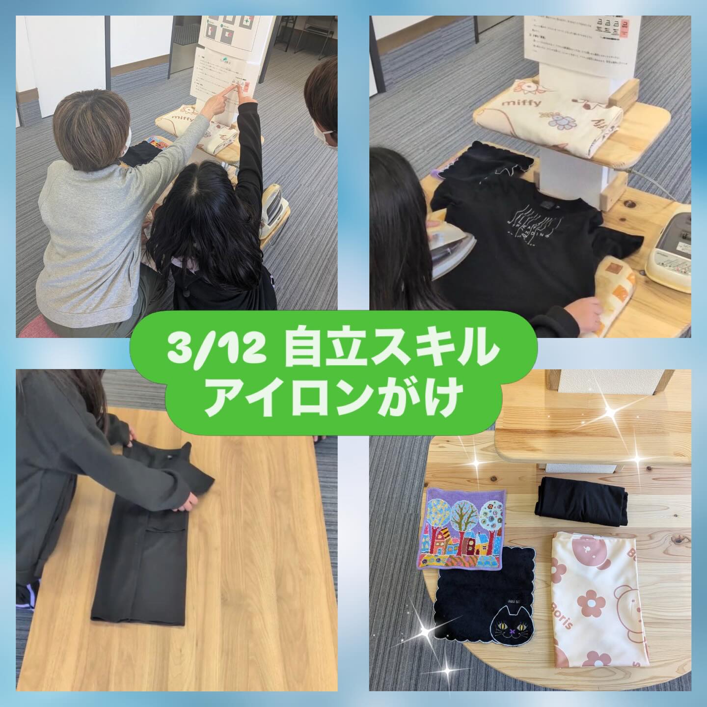 3月12日は自立スキルトレーニングとして、アイロンがけとTシャツたたみに挑戦しました👕✨