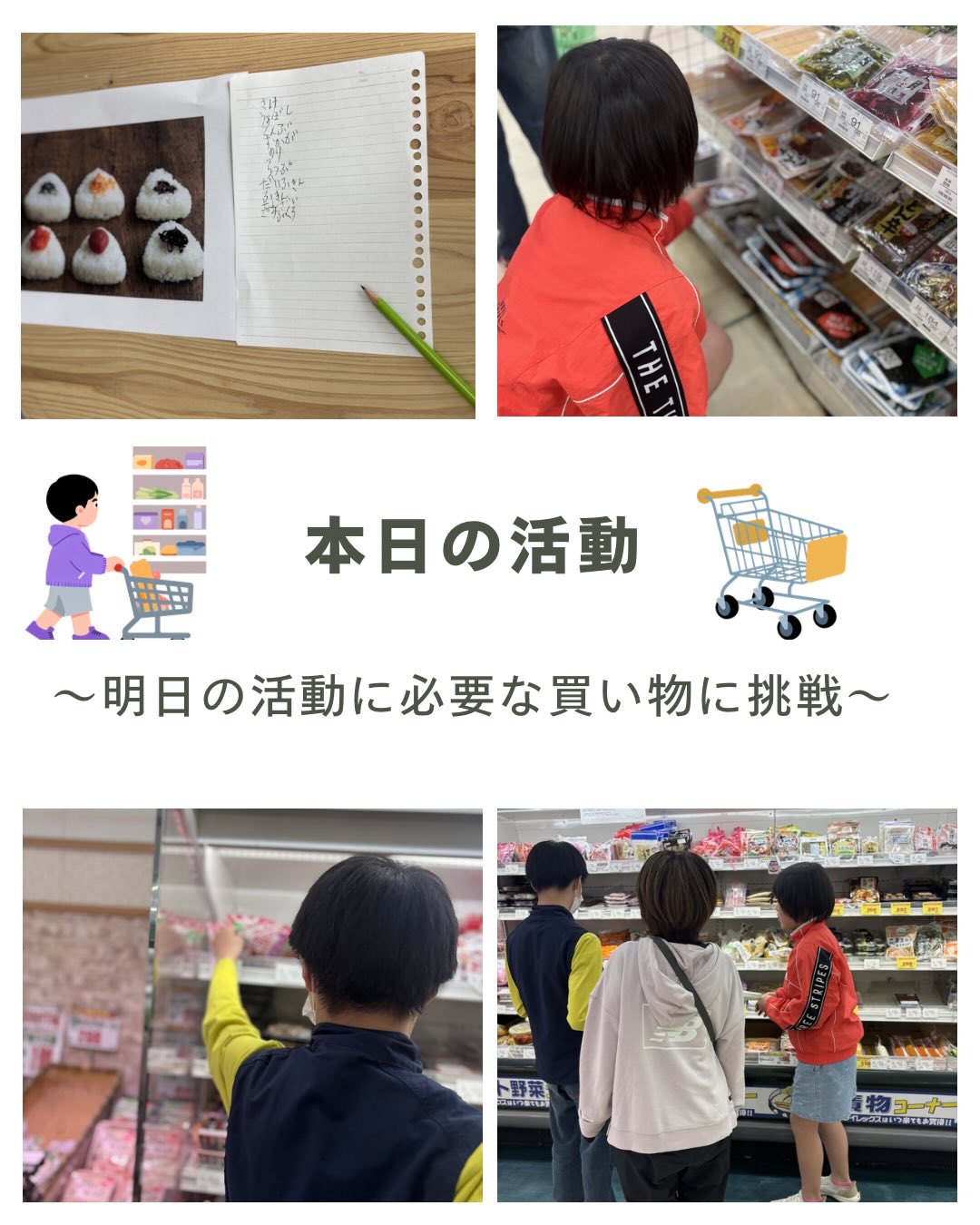 「のりはどこかな?」「昆布は?」と、自分たちで書いたメモを見ながら店内を探してお買い物😊