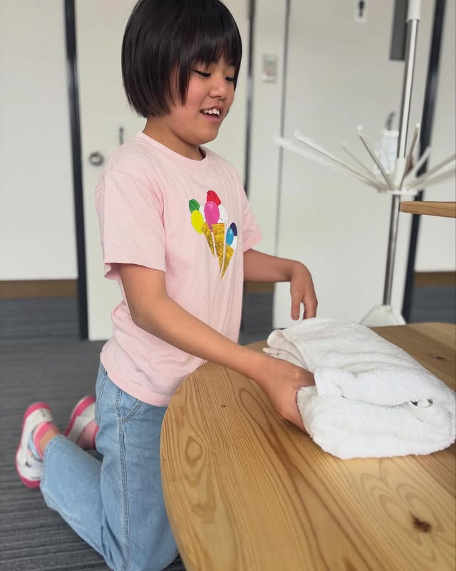 タオルも“はじとはじを合わせる”ことを意識して、上手に畳むことができていました👏